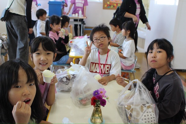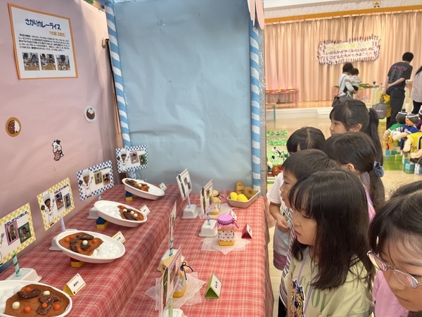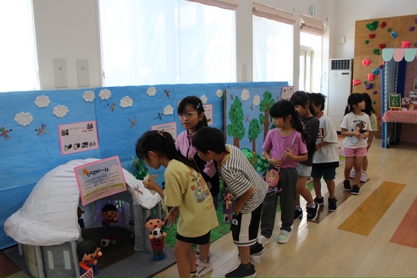 | こども園の作品展にあそびに行ってきました♪かわいい作品がたくさんあり、こどもたちも楽しそうに見ていました。また、くじやわなげなども楽しみ、最後はアイスを食べこどもたちは満足そうな表情をしていましたよ♡ | ||