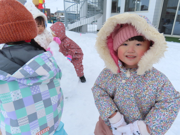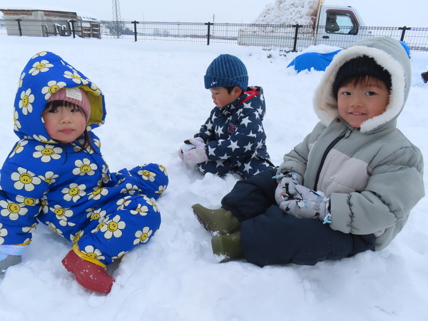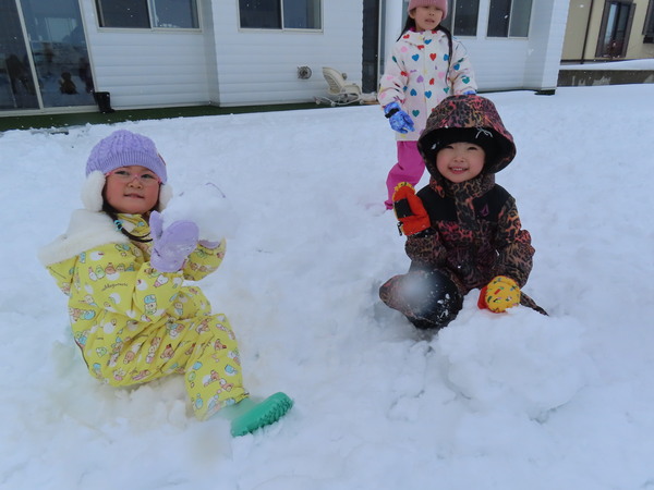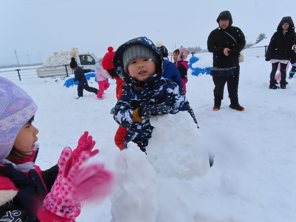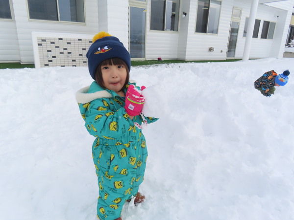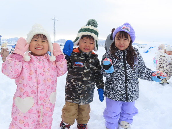 | こどもたちが大好きな雪あそび!冬ならではのあそびを満喫し、笑顔で活発に活動していますよ♪ | ||