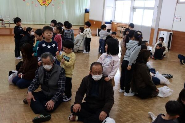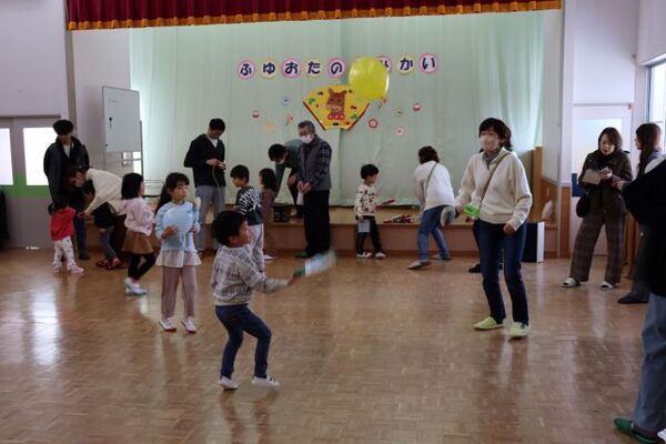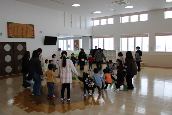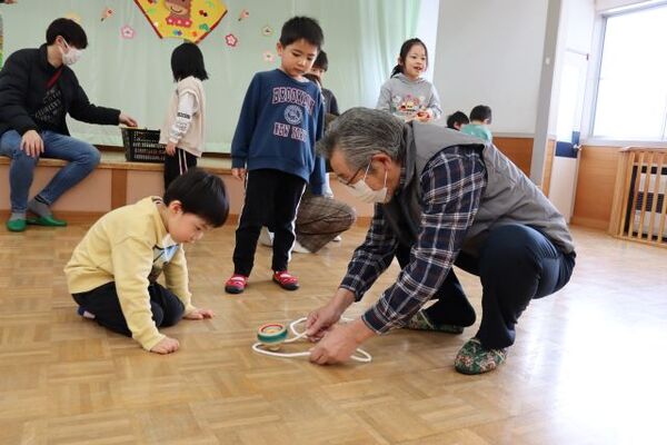 | 1月9日(金)冬お楽しみ会(地域交流会)を行い、みんなで 伝承あそびをしました♪参加してくださった地域の方も昔を 思い出しながらこども達と一緒に楽しむ姿が見られていました(*^-^*) |