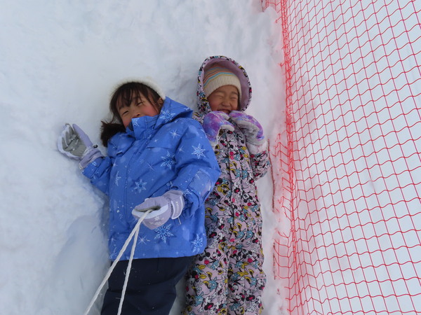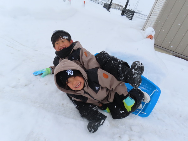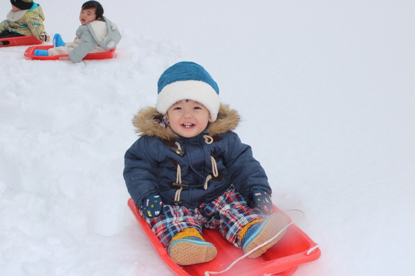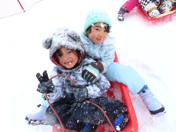 | やま組5歳児さんが、大鰐スキー場へ『そり遠足』に出かけました!寒さに負けず何度も坂を上っては滑り、夢中でそり遊びを楽しんでいました。お昼ごはんにラーメンを食べて「おいしい〜♡」と嬉しそうな子どもたち☺とても楽しい1日になりました! | ||