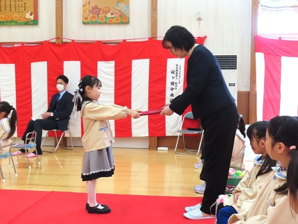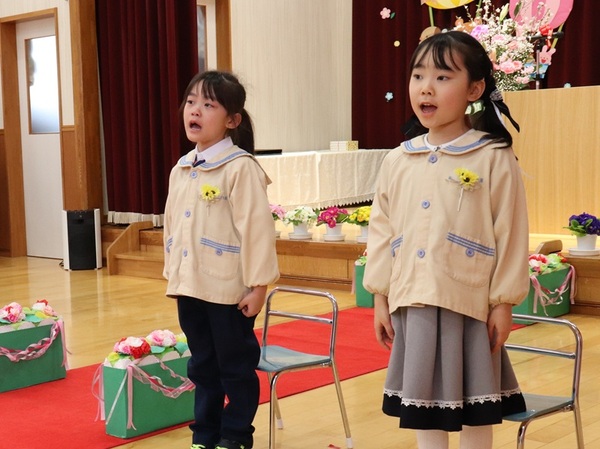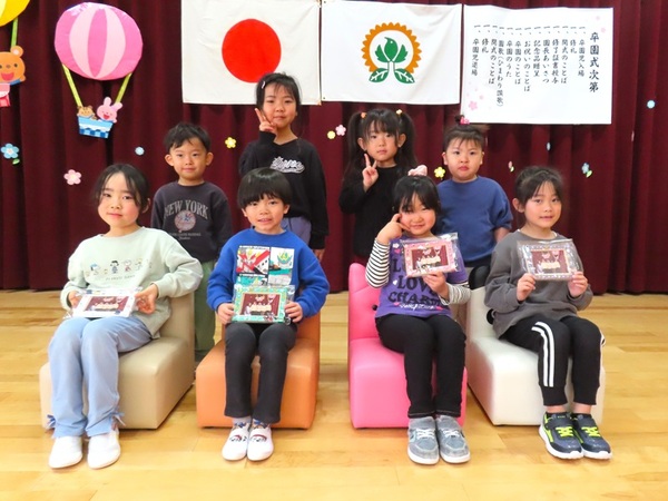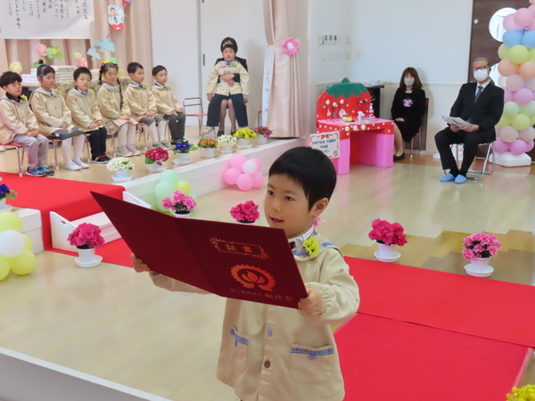 | 3月7日(土)、卒園式を行いました。修了証書を受け取る子どもたちの表情はとても凛々しく、成長を感じる瞬間でした。涙と笑顔がいっぱいの素敵な卒園式でした! 年長さん、ご卒園おめでとうございます❀元気いっぱいの一年生になってね! |