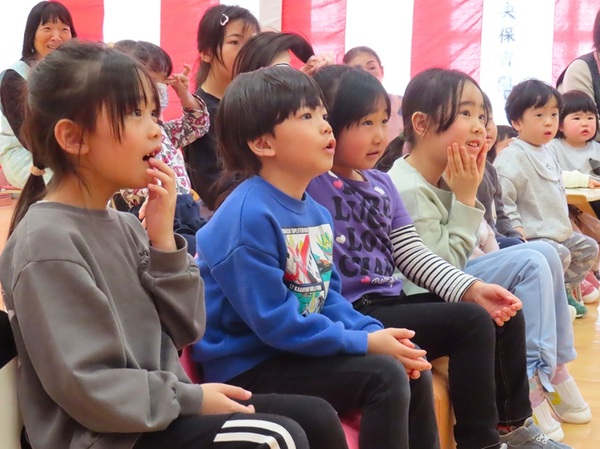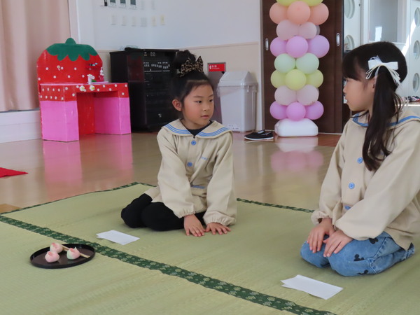| 上段:「ひなまつり集会」 桃の節句の由来について、真剣に話を聞いていた子どもたち☺製作した雛人形を発表したり、ゲームを楽しみました! 下段:「卒園進級お祝い茶会」 子どもたちの卒園・進級をお祝いしてお茶会を行いました。年長さんは自分でお茶を点てて飲みました♪ |