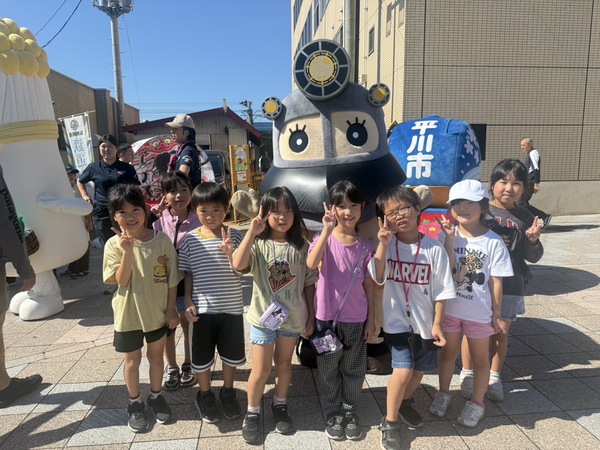 | こども園の作品展の帰り、平賀駅で行われていた「鉄道まつり」にも行ってきました。普段は見られないラッセル車に乗り、中を見学したり、ゆるキャラと写真撮影をしてきました☆ みんなでお出かけし、良い思い出になった一日でした♡ |