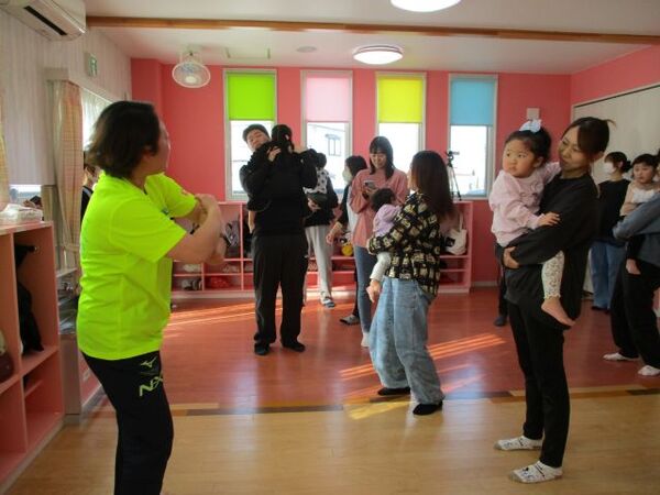 | 保育参観日が行われました。 親子体操普及員の舘 信子さん(のぶ先生)をお招きし、親子体操を楽しみました。 のぶ先生のご指導のもと、親子でふれあい体を動かし楽しい時間を過ごしました。 こども達の楽しそうな表情がとても印象的でした。 |