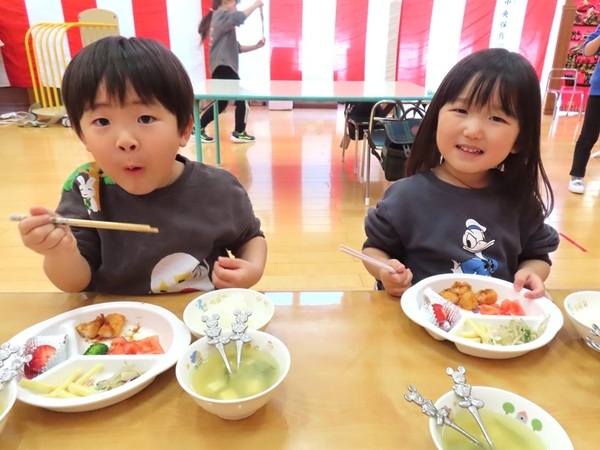 | お昼は会食パーティーをしました!みんなで食べるとおいしいね♡ | ||