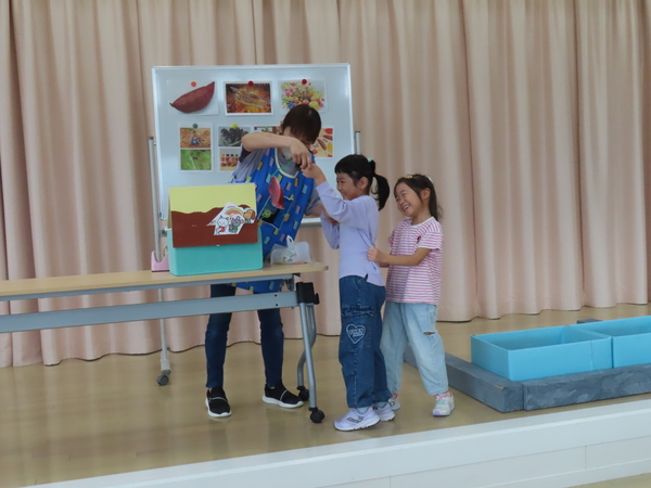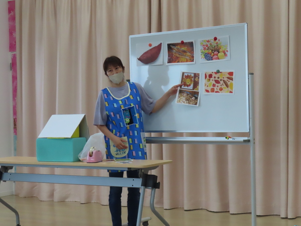 | 10月8日(水)、秋とあそぼう会を行いました。秋の味覚と収穫に感謝を持つこと、美味しく食べることの大切さについての話を聞きました。また、みんなでシアターやゲームを楽しみ笑顔で活動していましたよ♪ | ||