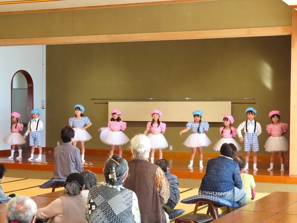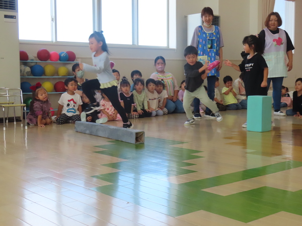 | 上段:「 一人暮らし高齢者会食会参加 」 たくさんのおじいちゃん・おばあちゃんの前で少しドキドキしながらも、お遊戯や歌、ふれあい遊びで交流を楽しみました!おじいちゃん・おばあちゃん、いつまでも元気でいてね♡ 下段:「 戸外遊び 」 過ごしやすい季節になりました!子どもたちは大好きな戸外遊びや散歩に出かけて、秋を感じながら活動を楽しんでいます♪ |