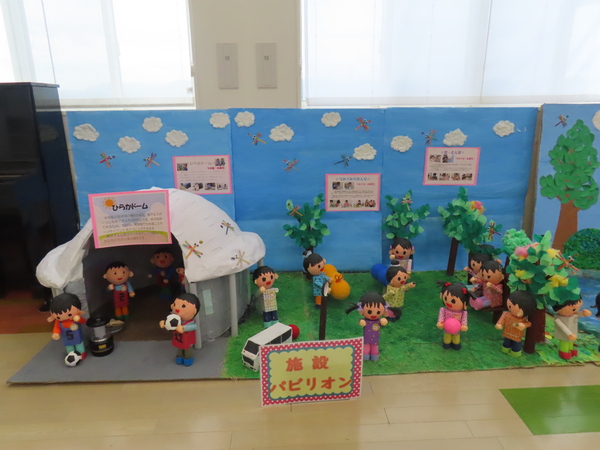 | 10月4日(土)、第21回作品展が行われました。今年度は「ひらかわ万博2025〜いのちかがやくみらいのために こどもたちができること〜」をテーマに作品作りに取り組みました。素敵な作品で飾られた遊戯室には、こどもたちと保護者の方々の笑顔で溢れていました♪ 保護者のみなさま、ご協力ありがとうございました☆ |