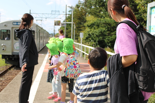 | 10月2日(木)、やま組(5歳児)さんが電車遠足に行ってきました。わくわくした気持ちで乗った電車!「何個の駅で着くかなぁ〜」とお友だちと会話を弾ませていました♪弘前運動公園で下車し、たくさんあそんできました。そして、楽しみにしていたお弁当♡美味しく頂きました☆ | ||