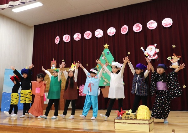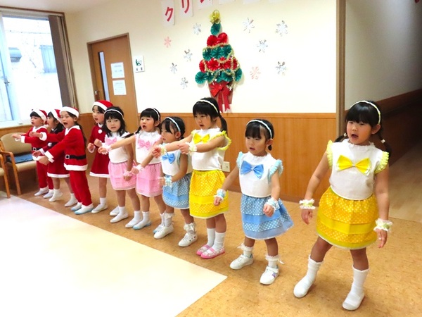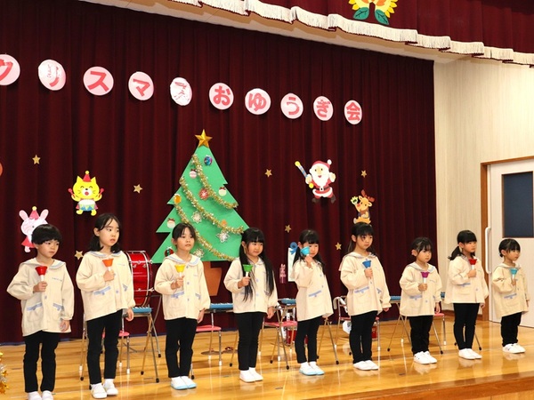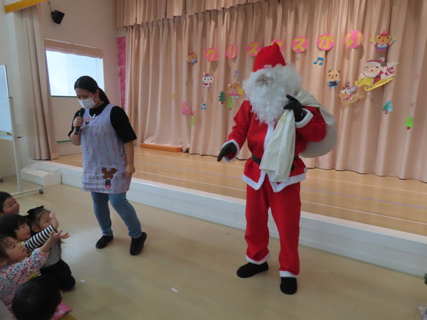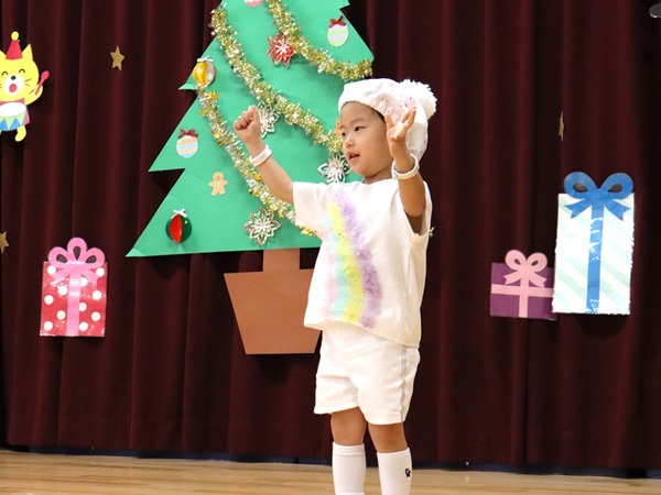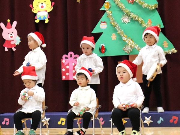 | 12月6日(土)、碇ヶ関中央こども園遊戯室にて第25回クリスマスお遊戯会を開催しました!本番を楽しみに練習に励んできた子どもたち。最初はたくさんのお客さまを前に緊張していた様子でしたが、次第に笑顔が見られ元気いっぱい発表する姿が見られていました☺お遊戯会の最後にはサンタさんが来てくれて、頑張った子どもたちにプレゼントを渡してくれました!たくさんの拍手が子どもたちの自信につながったと感じています。 来賓の皆さま、保護者の皆さま、ご協力ありがとうございました! |