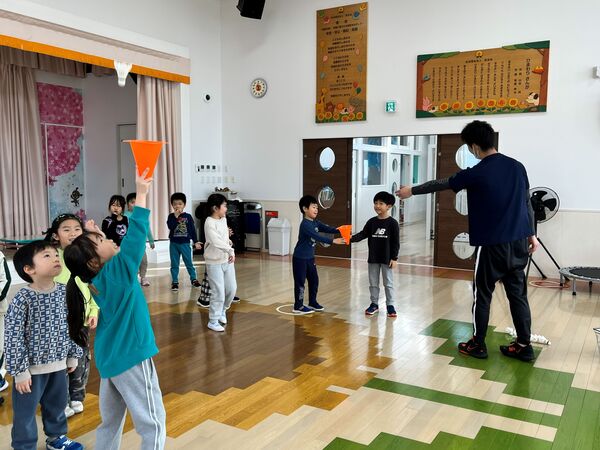 | 12月19日(金)、やま組(5歳児)さんが体操教室に参加しました。フープをくぐったり、跳び箱の練習をしました。みんな、ダイナミックにジャンプしている姿がとても印象的でした♪ | ||