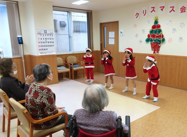 | 上段:「クッキング」 4・5歳児さんがデコレーションケーキを作りました!クリームをしぼってフルーツや飾りを乗せて、気分はケーキ屋さんです🍰みんなでおいしくいただきました! 下段:「桜林館クリスマス会」 4・5歳児の子どもたちがお遊戯や歌を披露し、おじいちゃん・おばあちゃんとの交流を楽しみました☺ |